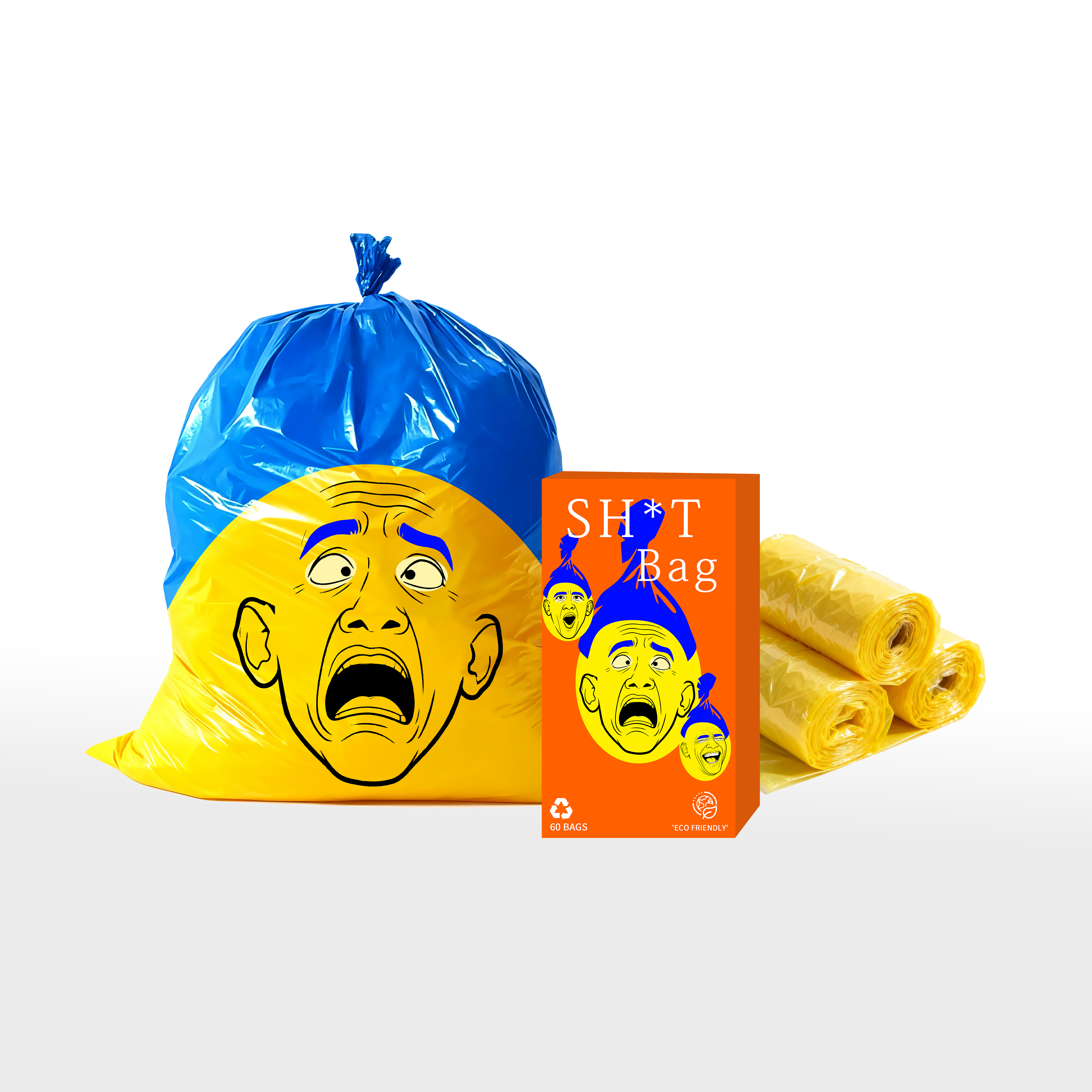 SH*T Bag is the eco-friendly, fun, and functional solution for cleaning up after your dog! With a playful design featuring a famous, cartoonish face, this bag adds humor to your dog walking routine. It’s made from biodegradable materials, ensuring your walks are not only enjoyable but also sustainable. 🌍💩